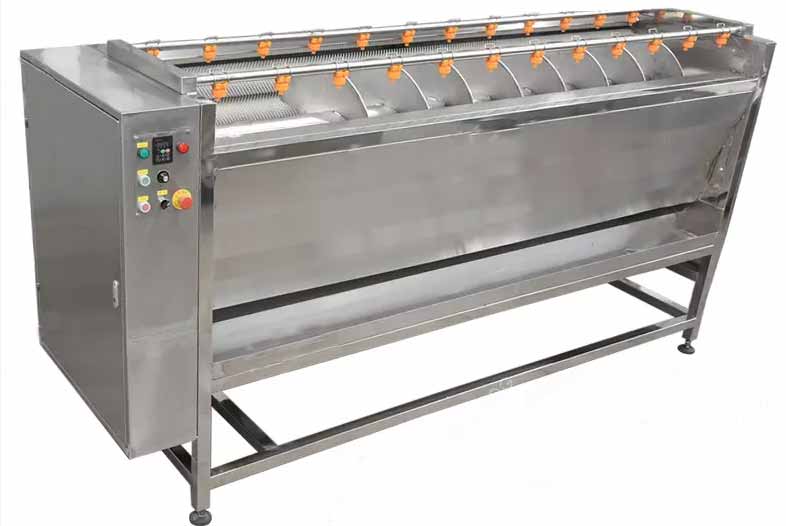 1. Application: The brush roller peeling machine is mainly used for round and oval root vegetable and fruit washing and peeling, like potato, cassava, carrot, lotus root, orange, etc.